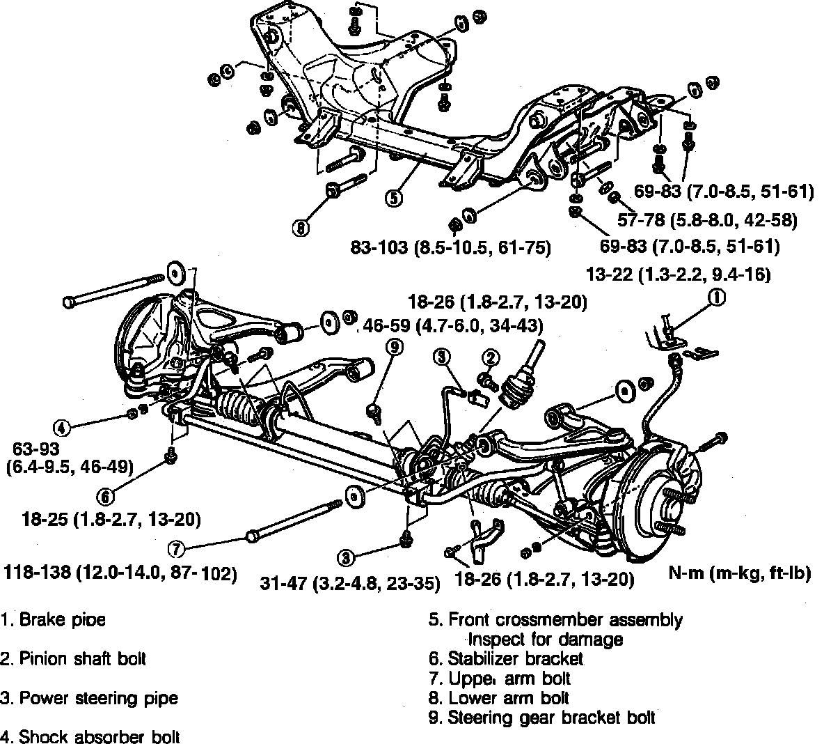 a. Lower crossmember and other suspension parts as an assembly, then separate parts.