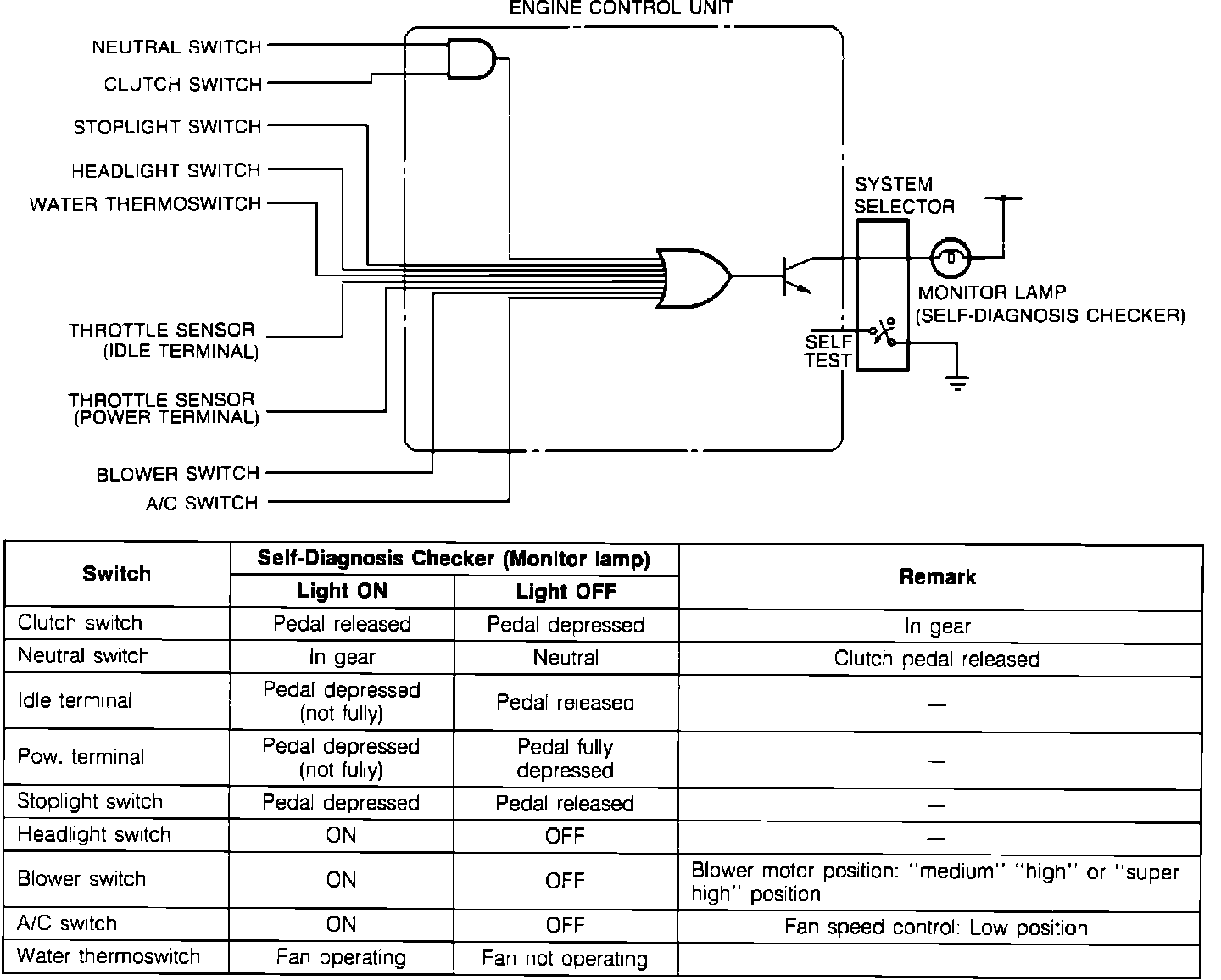 ^ The ECU Switch Monitor Function permits checking individual switches with Mazda System Selector (SST #49 B019 9A0) and Self-Diagnosis Checker (SST #49 H018 9A1) or a compatible aftermarket "Scan" tool.