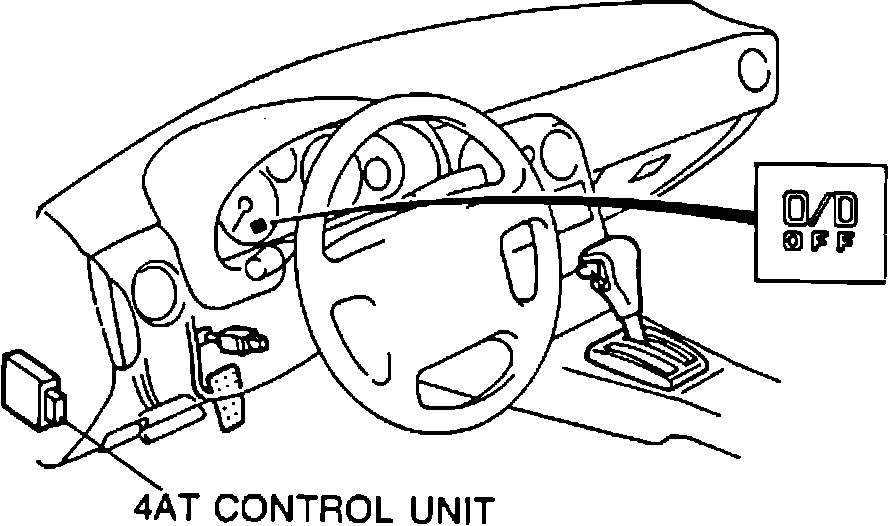 The 4 A/T Control Unit, located under the dash left of the steering column, is the control unit for various electrically operated functions of the N4A-HL automatic transmission.