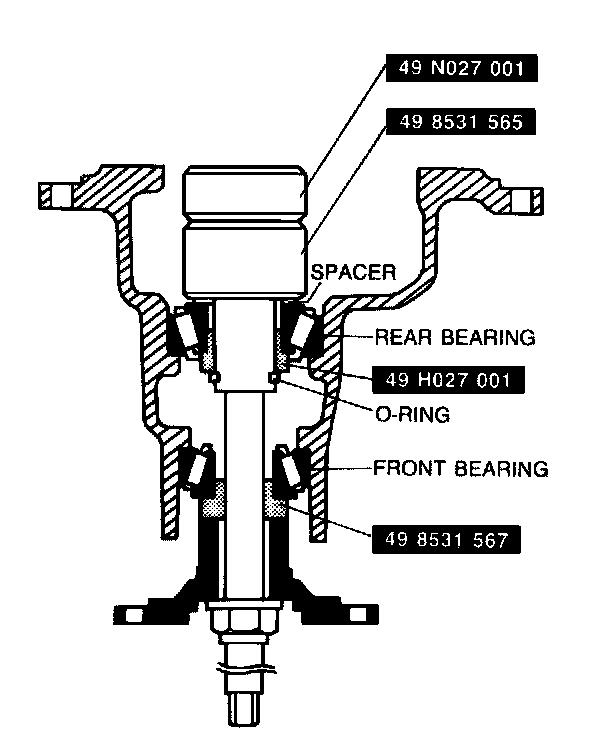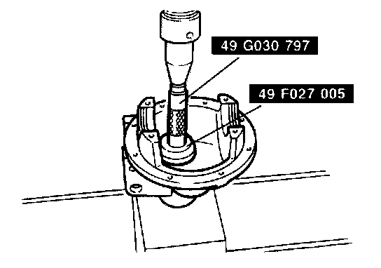 6. Install the rear bearing outer race with SST #49 G030 797 and #49 F027 005.