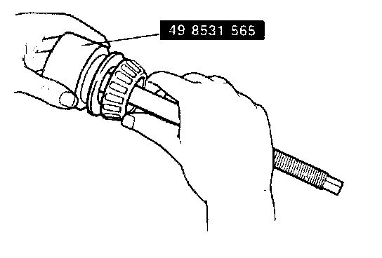 8. Install the spacer that was removed and the rear bearing inner race onto SST #49 8531 565 as shown.