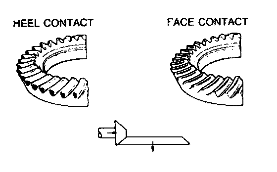 44. If the lead shows toe and flank contact replace the spacer with a thinner one to move the drive pinion outward.