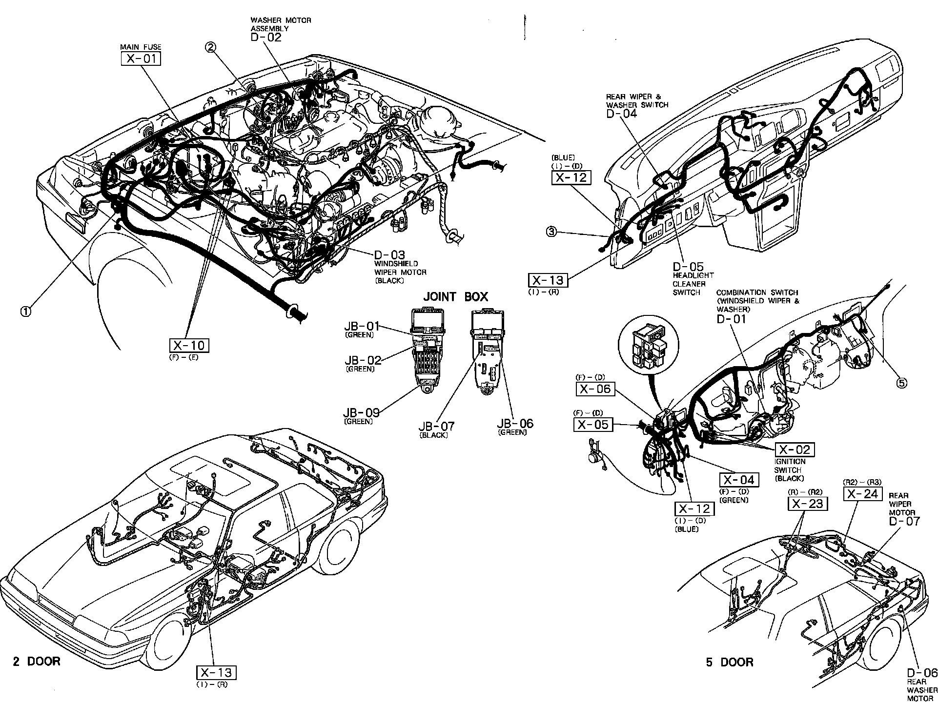 Windshield Wiper And Washer. Headlight Cleaner, Rear Wiper And Washer (5 Door). Harness And Connector Locations: