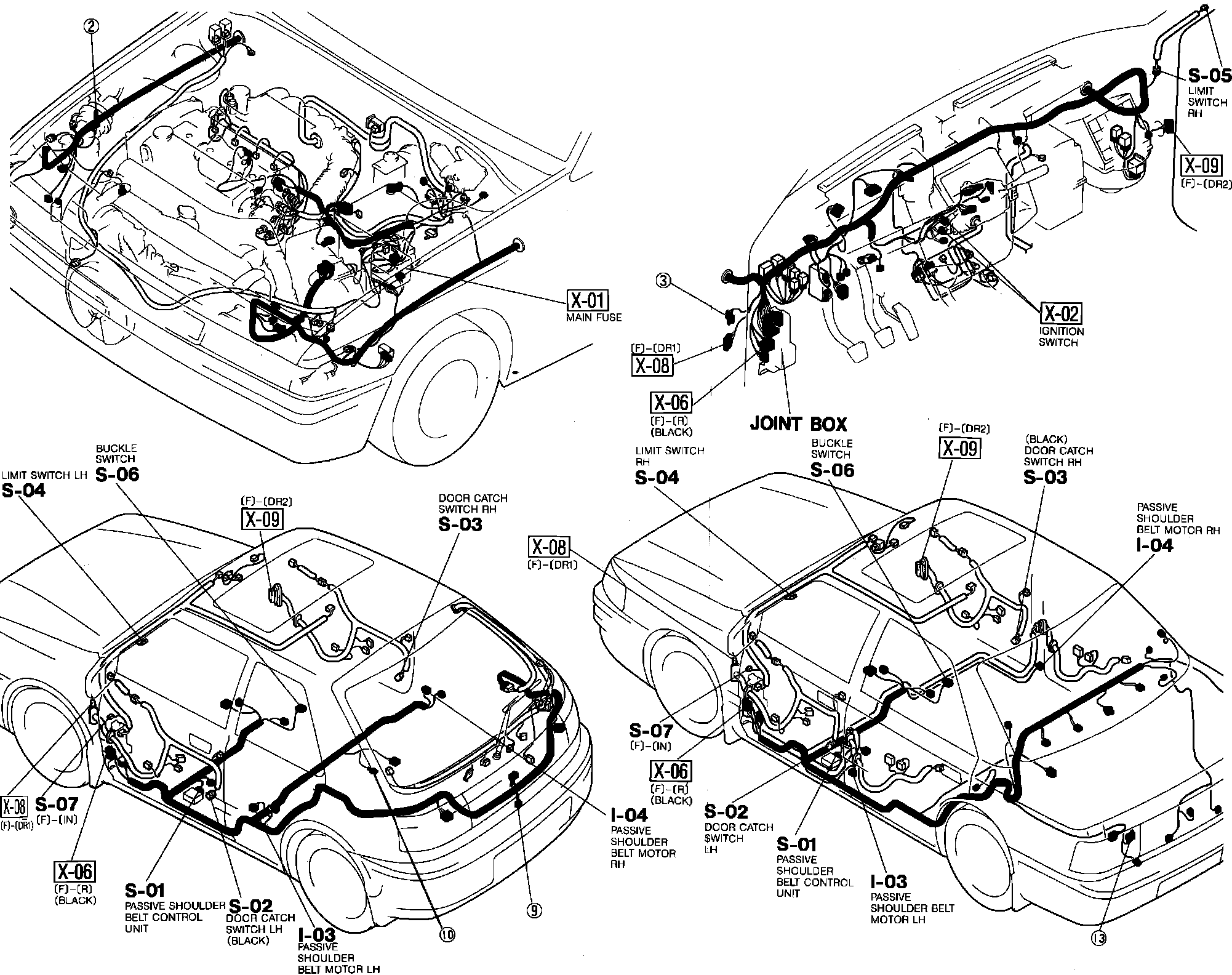 Passive Shoulder Belt Control System. Harness And Connector Locations: