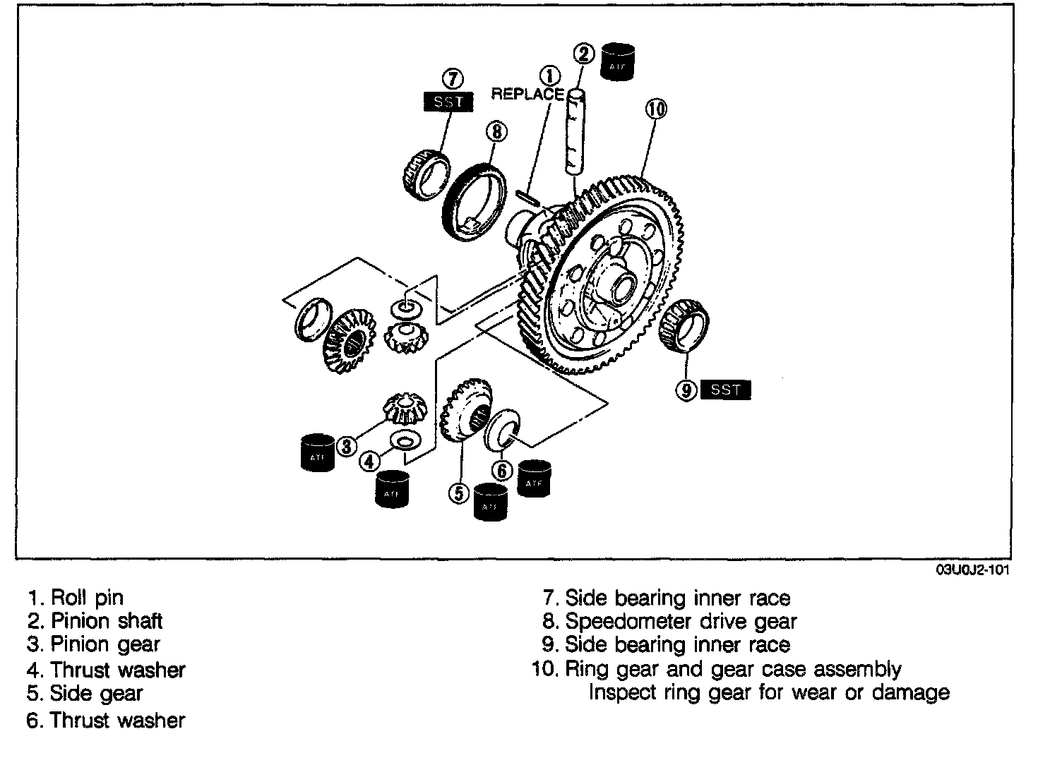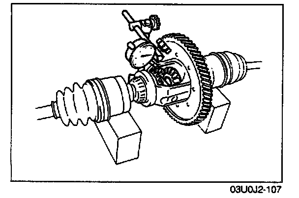 5. Measure the backlash after assembly, referring to Backlash of Side Gear and Pinion Gear.