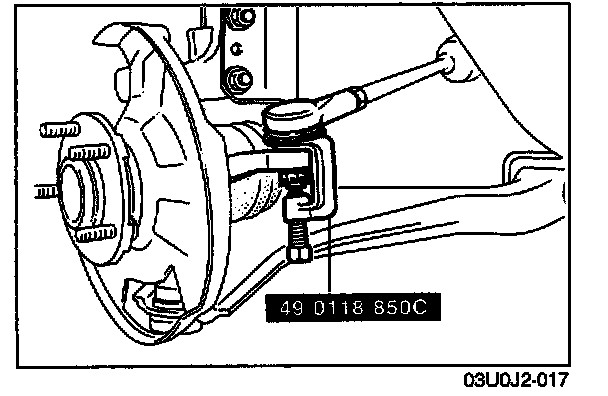 2. Loosen the nut and disconnect the tie-rod end with the SST.