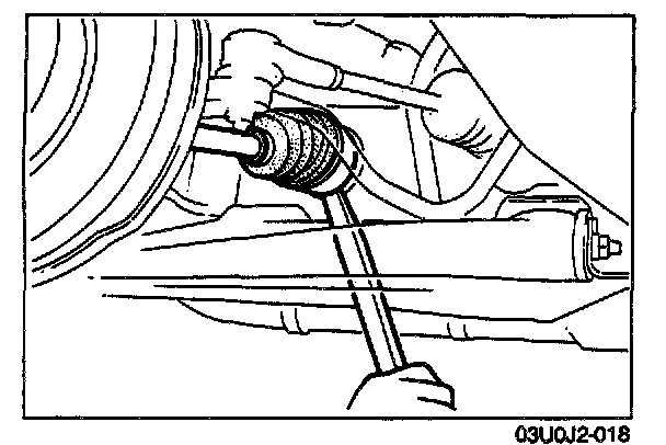 1. Separate the driveshaft from the transaxle by prying with a bar inserted between the outer ring and the transaxle.
