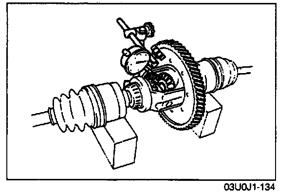 5. Measure the backlash after assembly, referring to Backlash of Side Gear and Pinion Gear.