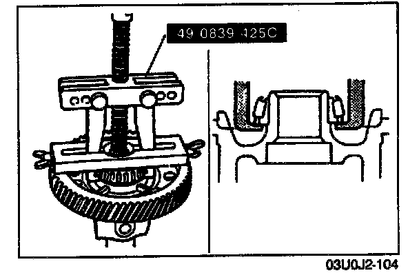 CAUTION: Do not remove the inner race if not necessary.1. Before disassembly, inspect the backlash of side gear and pinion gear, referring to Preinspection.