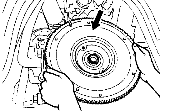 7. Remove the flywheel with the SST.