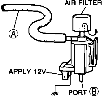 2. Blow through hose "A" and check that air flows from the air filter.