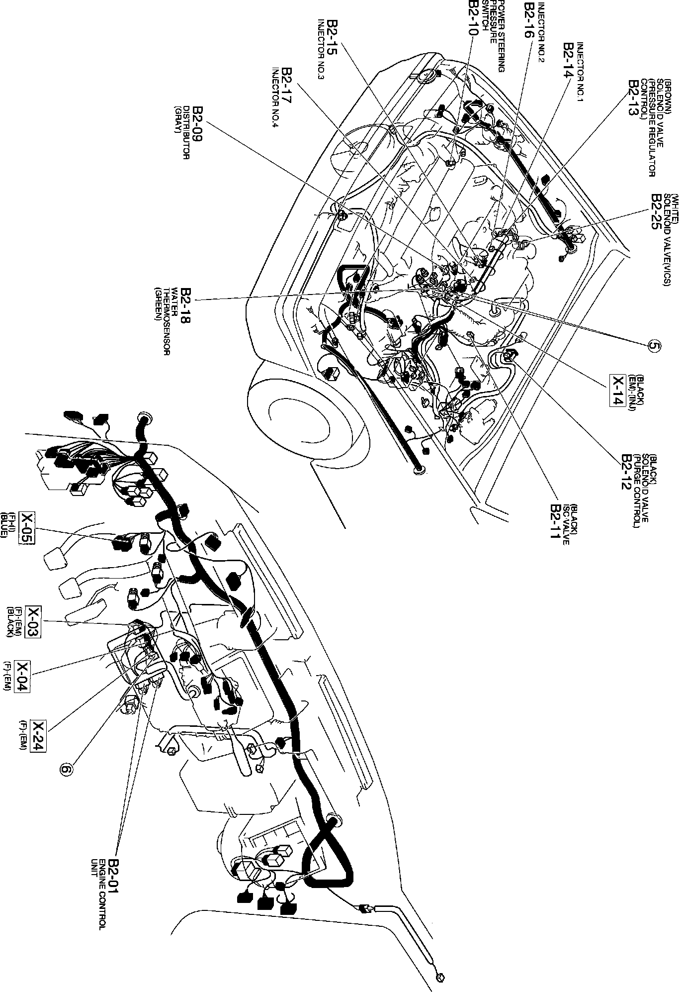Engine Control System. A/T. Harness And Connector Locations 2 Of 3: