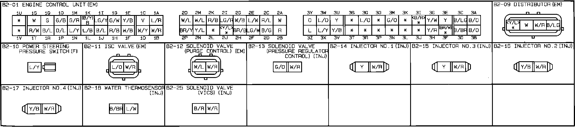 Engine Control System. A/T. Connector Identification 2 Of 3: