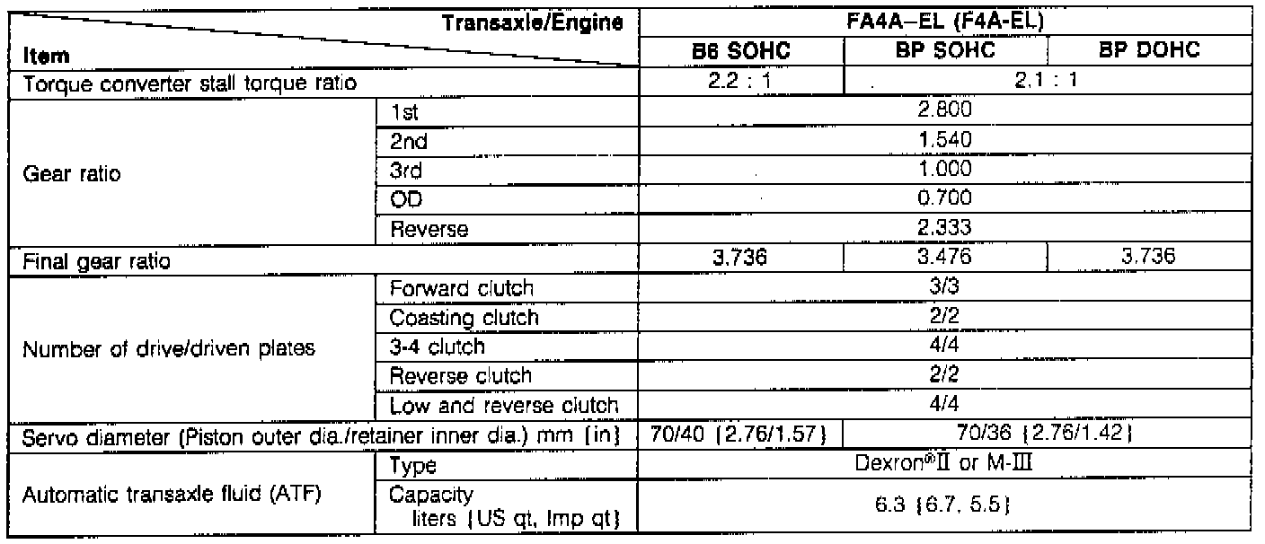 Electronic Transaxle Specifications: