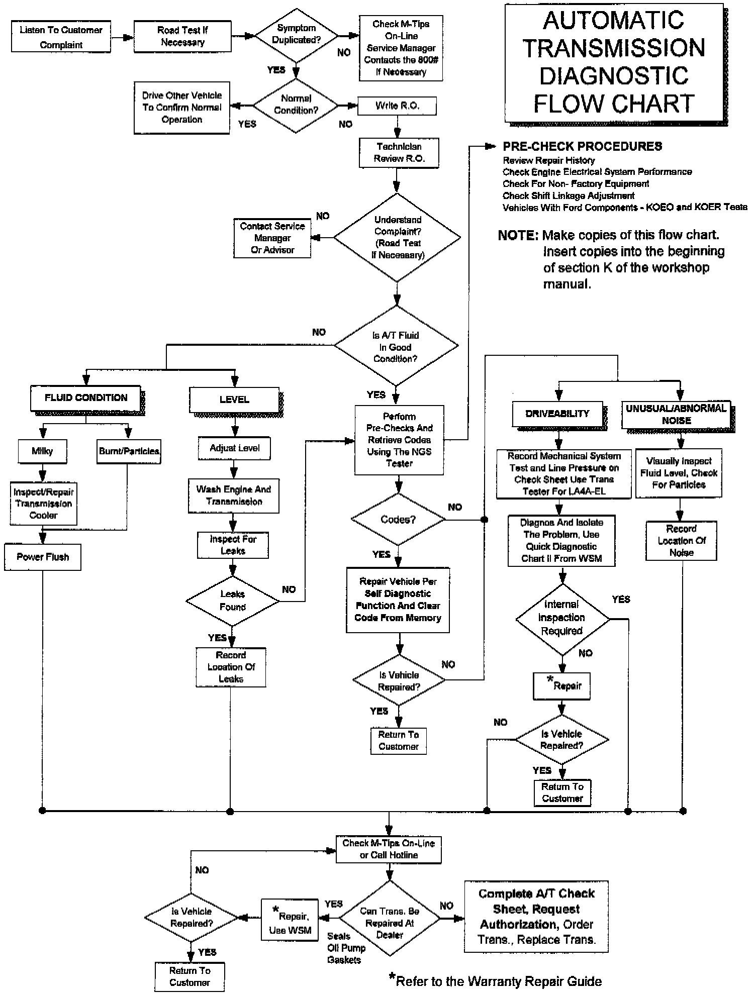 B) Warranty claims submitted for A/T Performance Tests must have a copy of the AUTOMATIC TRANSMISSION DIAGNOSTIC SHEET (ATDS) retained with the R.O