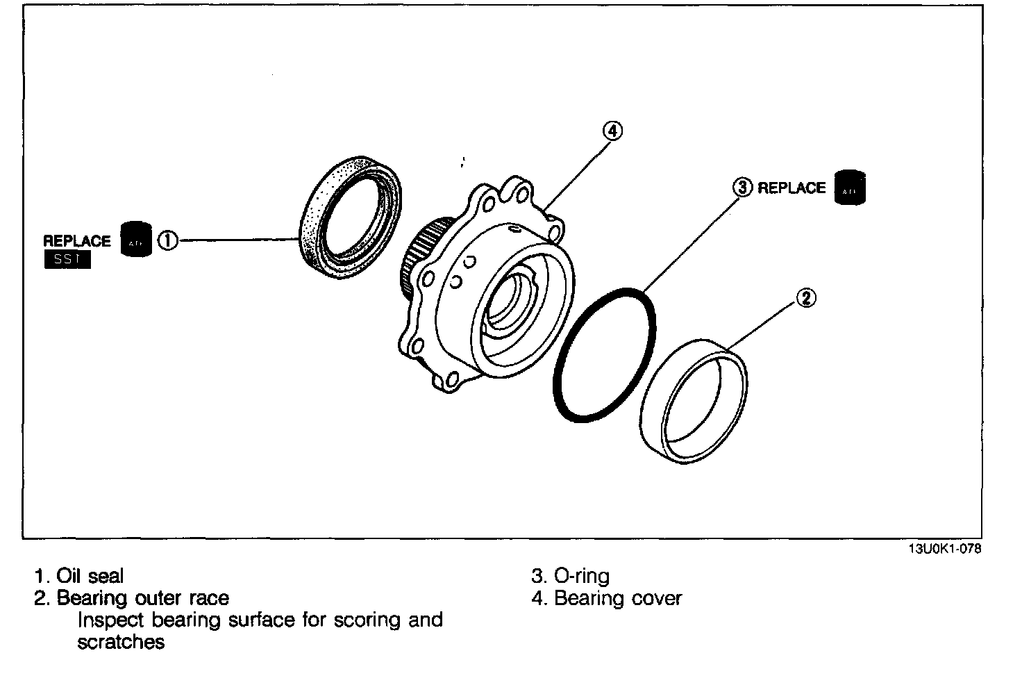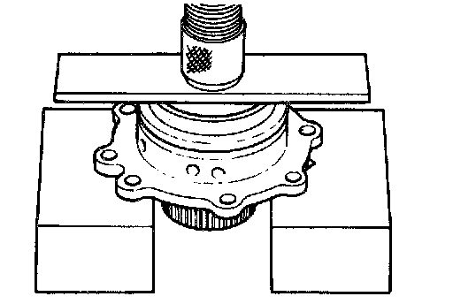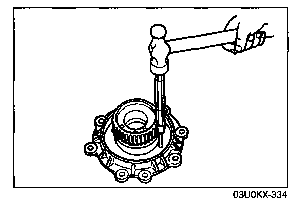 Remove the bearing outer race with a pin punch and hammer as shown.