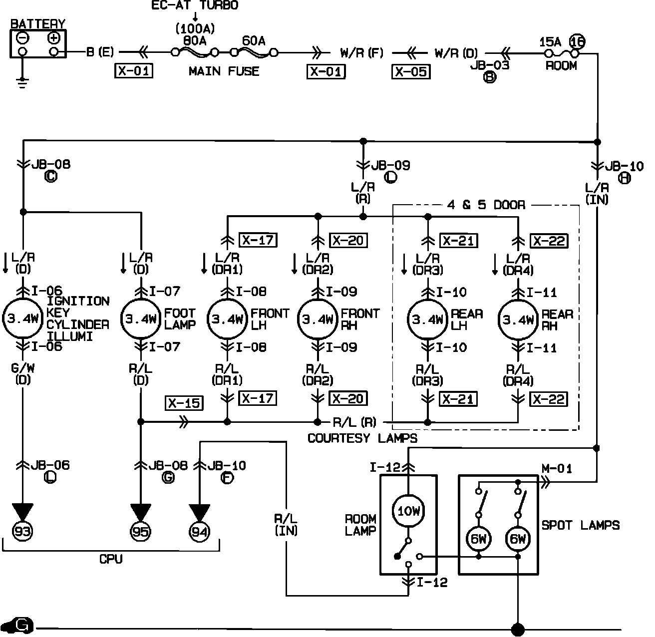 Ignition Key Cylinder Illumination, Courtesy, Room, Foot And Spot Lamps.: