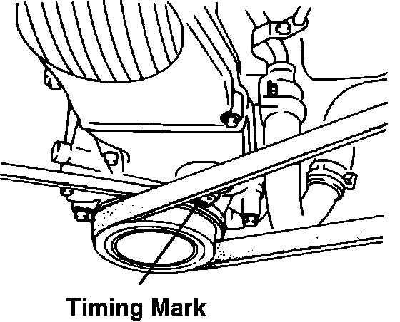 6. Check that timing mark (Yellow) on crank pulley and mark on timing belt cover are aligned.