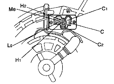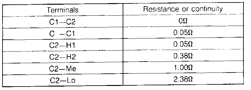 Check the resistance or continuity between terminals with an ohmmeter.