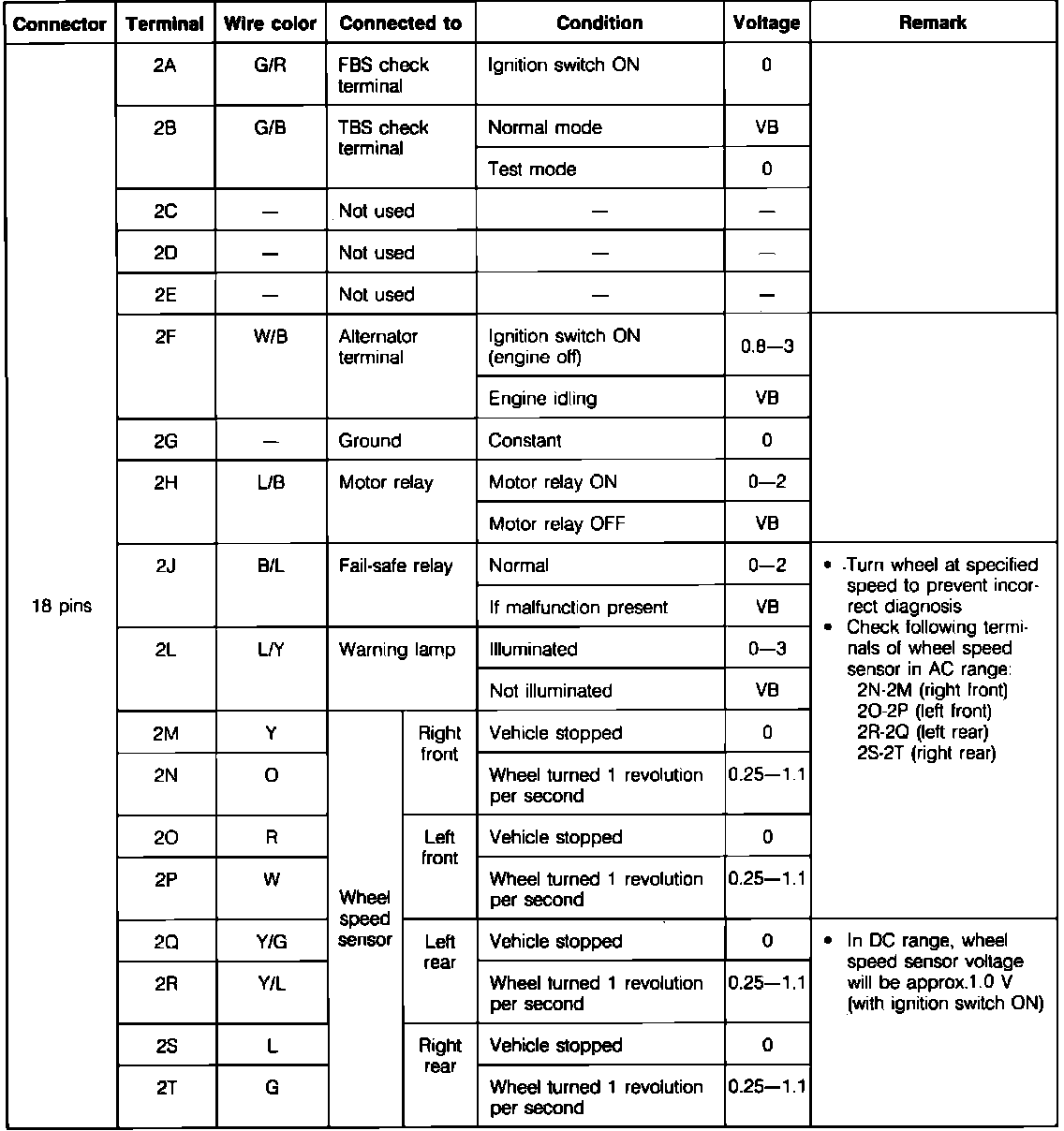 Anti-Lock Brakes. ECU Pin Voltage Chart: