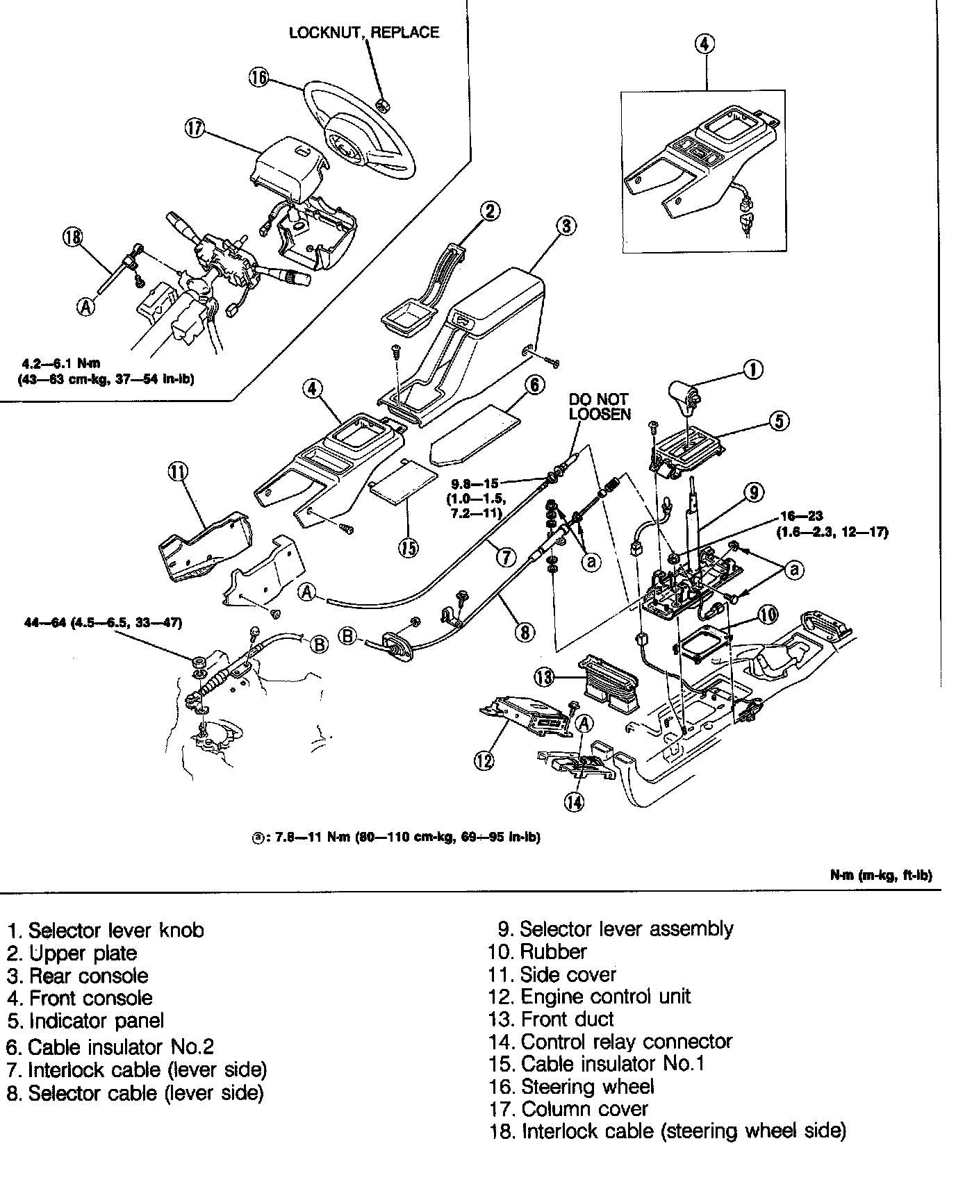 6. Connect the negative battery cable and check the selector lever operation and shift-lock system operation.
