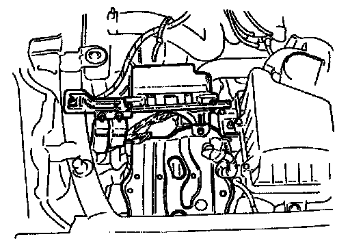 9. Remove the mounting bolt and throttle cable from the transaxle.