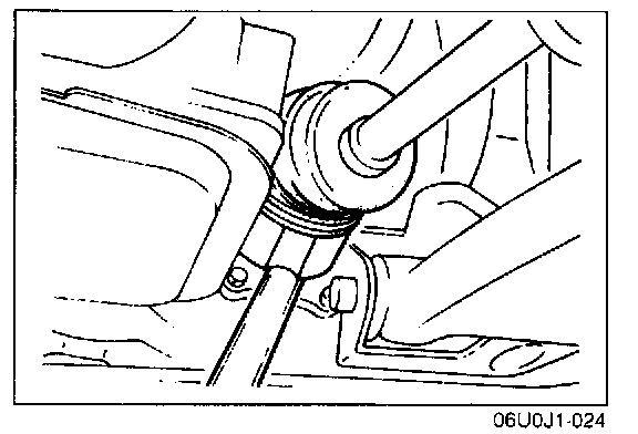 6. Separate the left driveshaft from the transaxle by prying with a bar inserted between the shaft and the case.
