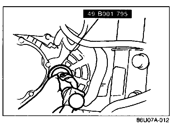 - After installation is finished, pull the front hub slowly outward to check that the driveshaft Is held securely by the clip.