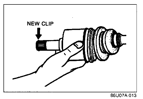 9. Replace the driveshaft end clip with a new one. Insert the clip with the gap at the top of the groove.