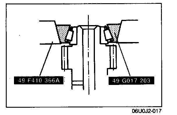 2. If the clearance exceeds the maximum, check the contact surfaces of 5th gear and the clutch hub. Replace worn or damaged parts.