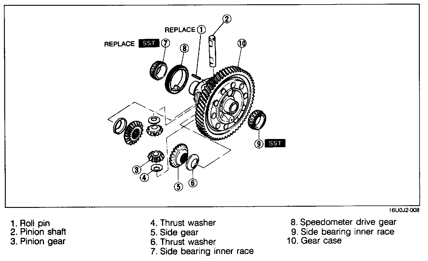 1. Inspect side gears and pinion gears for backlash, referring to Preinspection