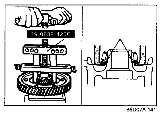 NOTE: Insert the rod Into the roll pin hole from the ring gear mounting surface side.