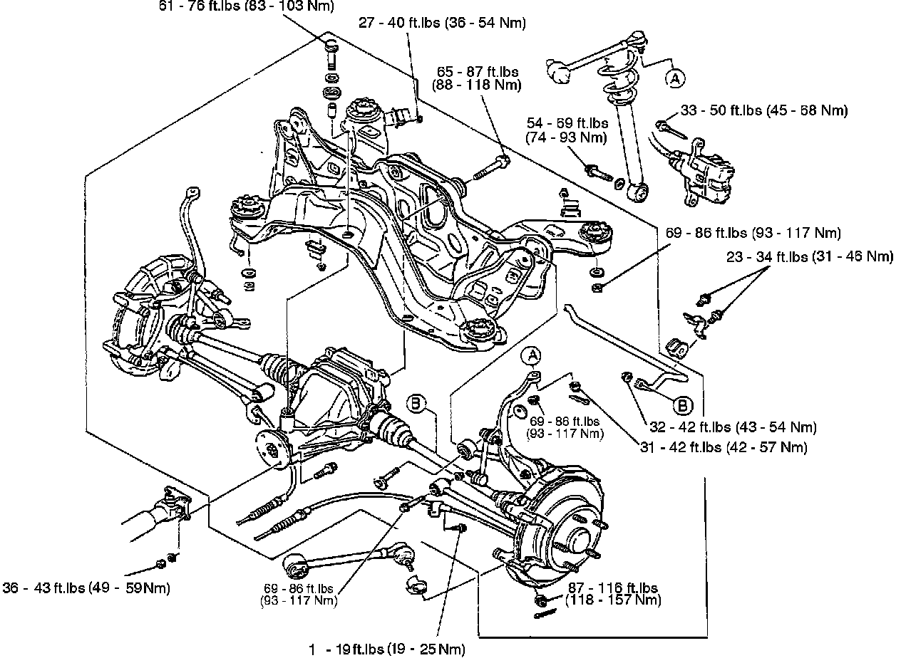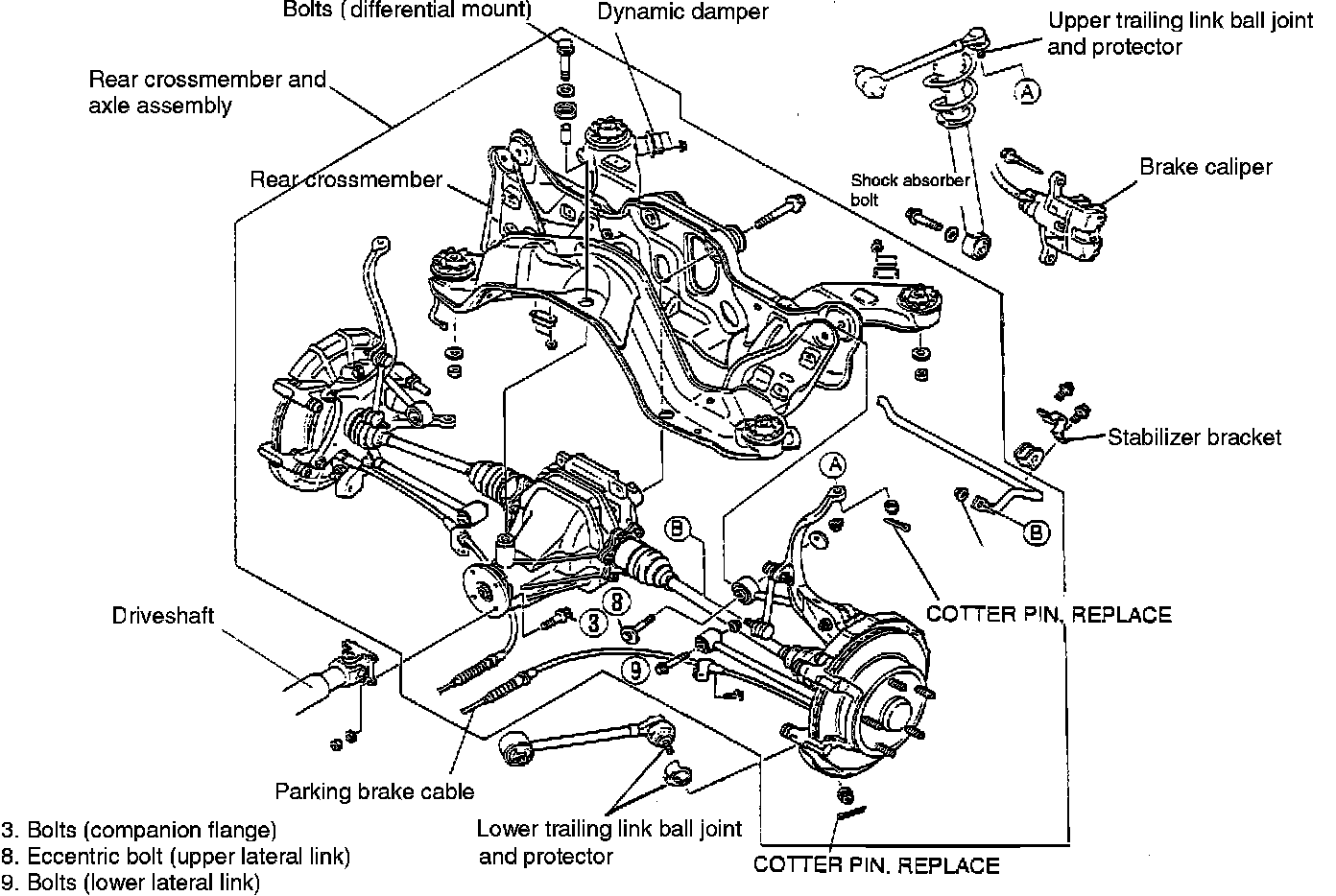 i. Unbolt crossmember from body and carefully lower entire assembly out of car with differential, wheel hub and suspension attached.