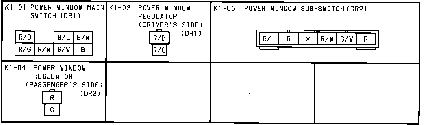 Power Window. Connector Identifications: