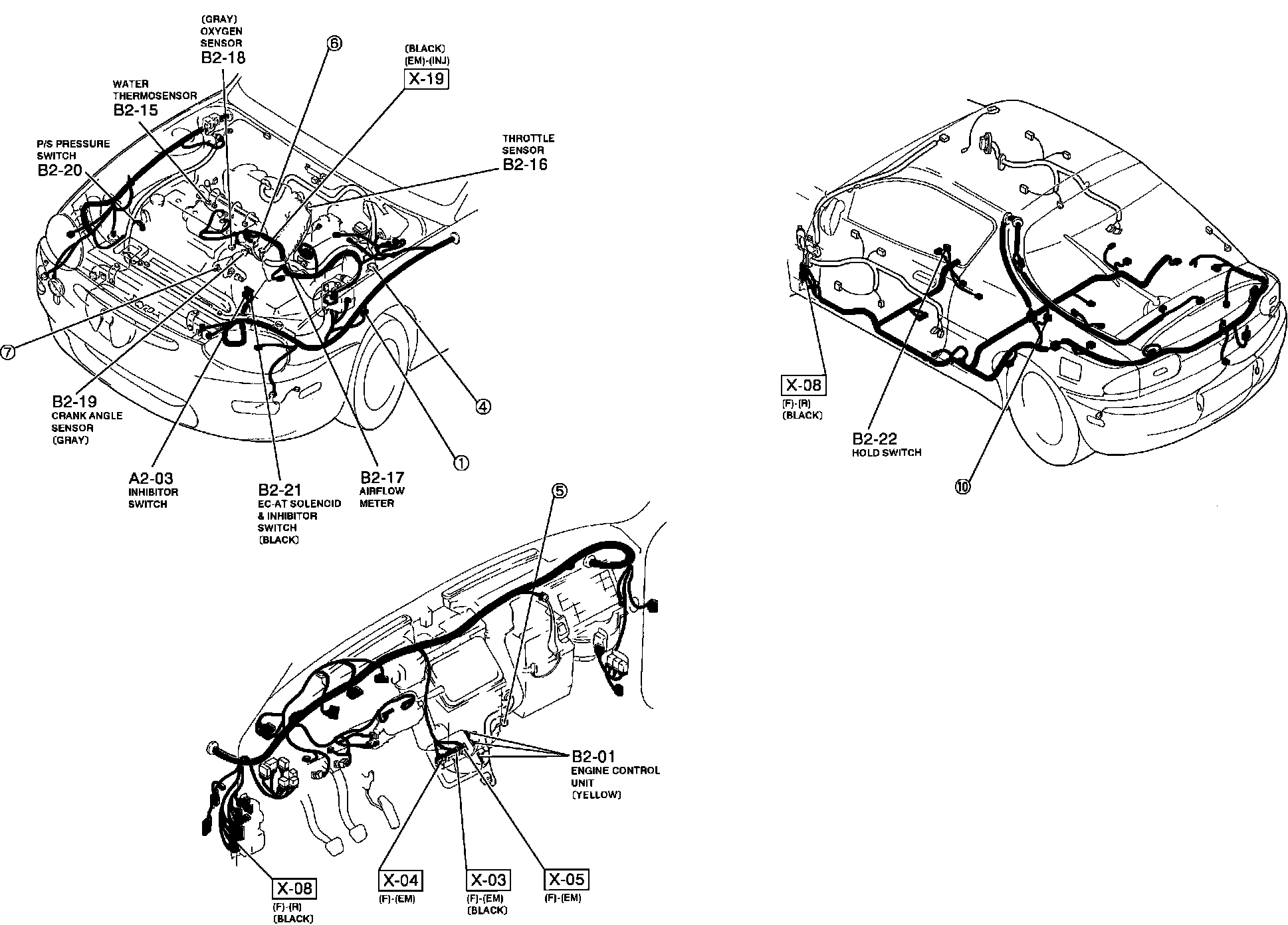 Engine Control System. A/T. Harness And Connector Locations: