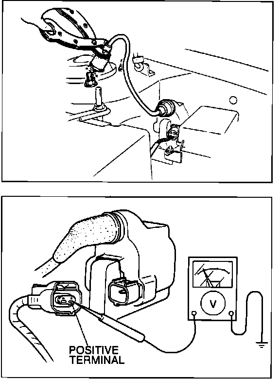 4. If there is no spark, check for battery voltage at the coil positive terminal with ignition switch "ON."