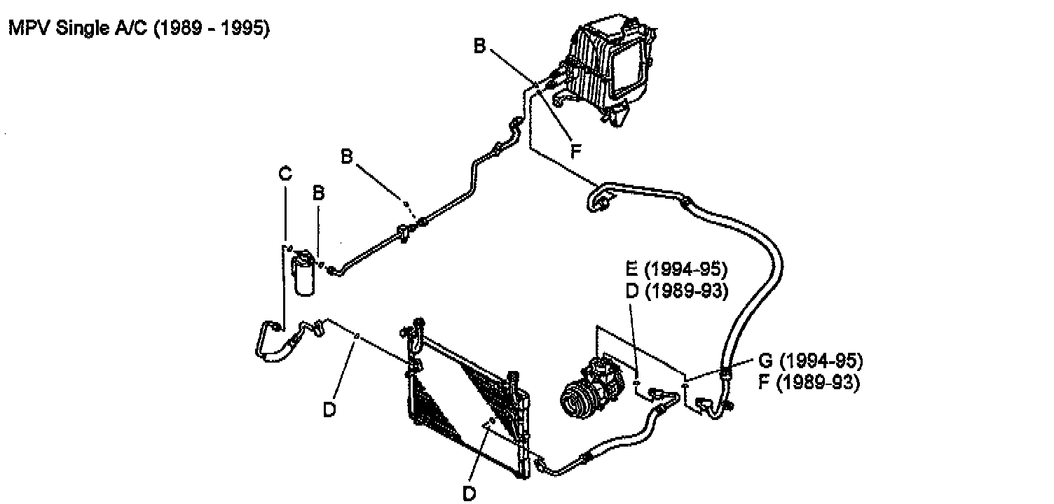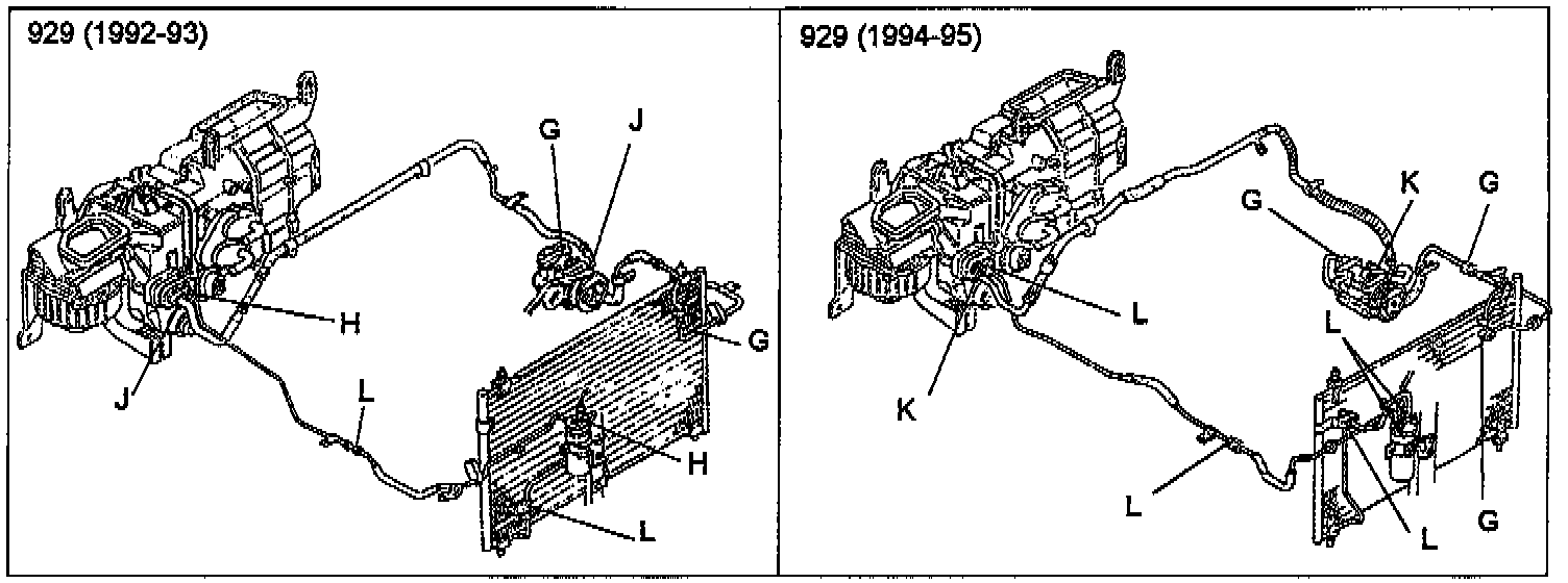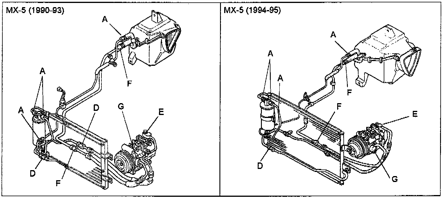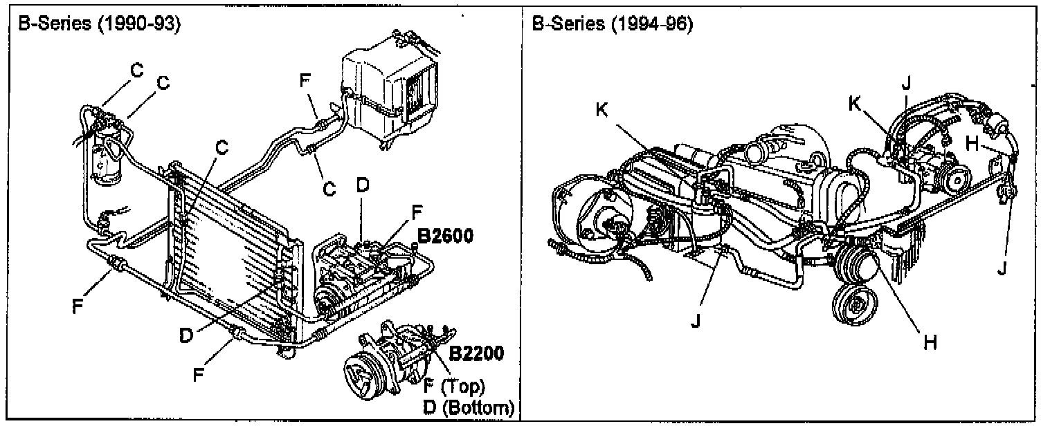 Refer to the illustrations and the chart when replacing air conditioning system 0-rings. These 0-rings are designed for use in both R12 and R134 air conditioning systems.