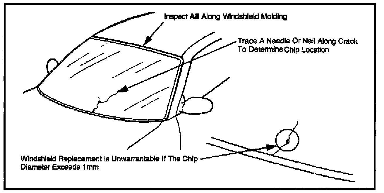 Windshield replacement is not warrantable it a chip larger than 1 mm in diameter exists along the length of the crack.