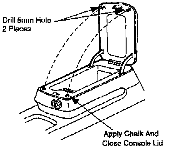 Do not drill the hole larger than 5 mm. Do not drill through the console lid. Install a drill stop if necessary.