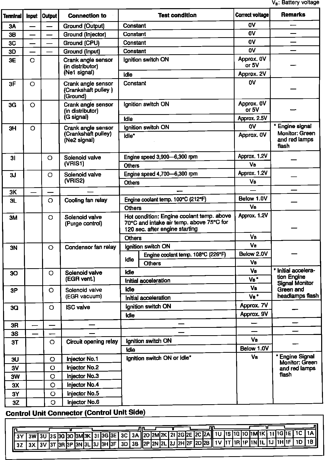 Engine Control System. A/T. ECU Pin Voltage Chart: