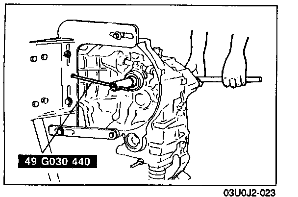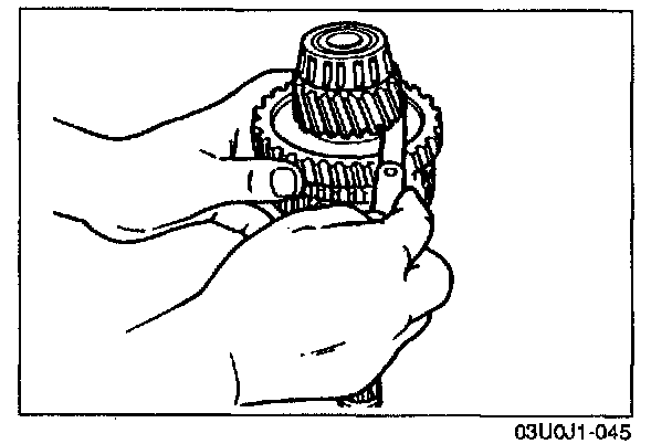 2. If the clearance exceeds the maximum, check the contact surfaces of 5th gear and the clutch hub. Replace worn or damaged parts.
