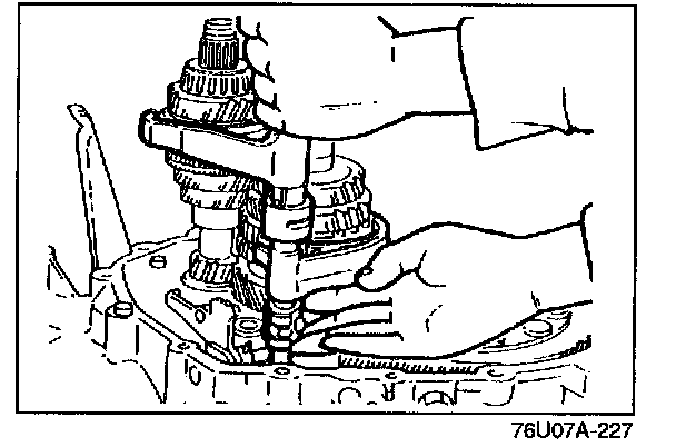 1. Measure the clearance between 1st gear and the differential drive gear.