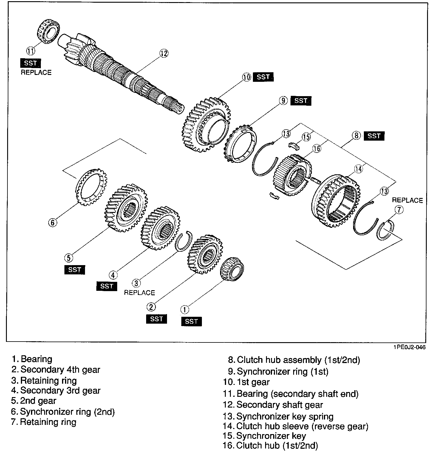 3. Remove the secondary 3rd gear and 2nd gear by using the SST.