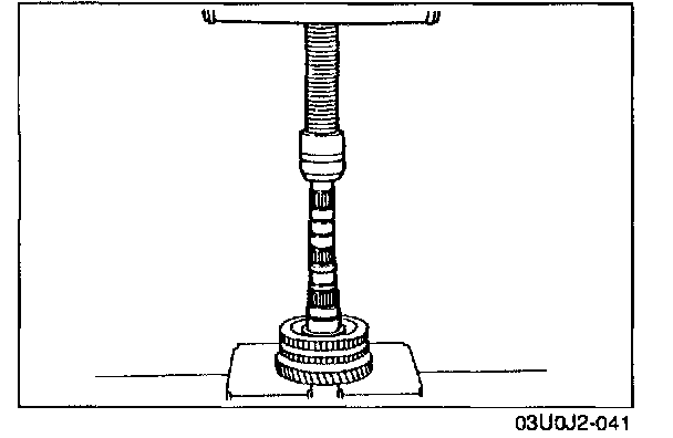 2. Remove the clutch hub assembly (1st/2nd), synchronizer ring (1st), and 1st gear by using a press.