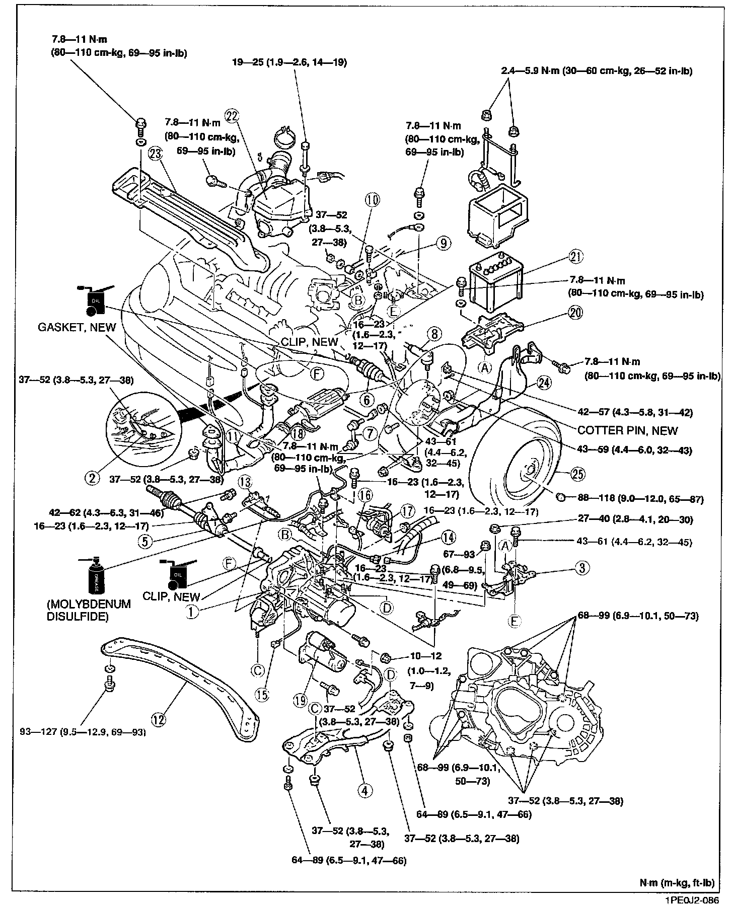 Tightening torque: 42-62 N.m (4.3-6.3 m-kg, 31-46 ft-lb)