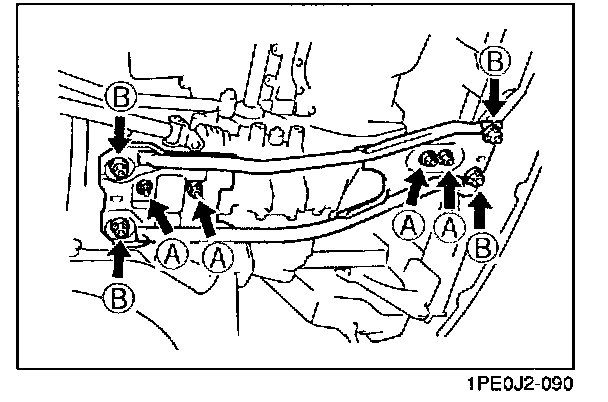 NOTE: Put the engine mount No.1 and No.2 stud bolts in the installing holes when installing the engine mount member.