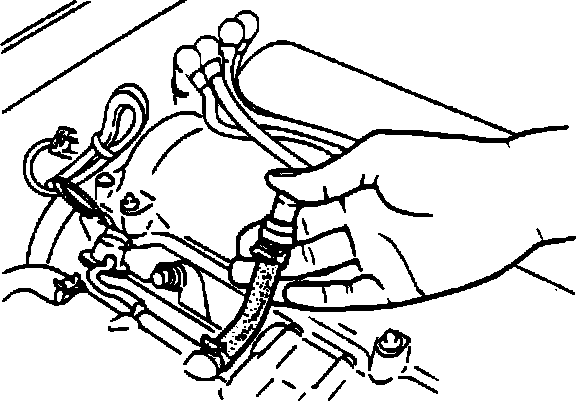 4. Remove valve and blow through from both directions. Verify that air flows through in one direction only (toward intake manifold).