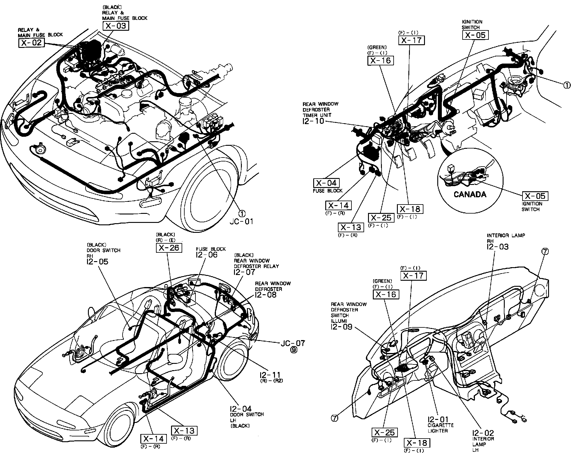 Interior Lamps. Cigar Lighter And Rear Window Defogger. Harness And Connector Locations: