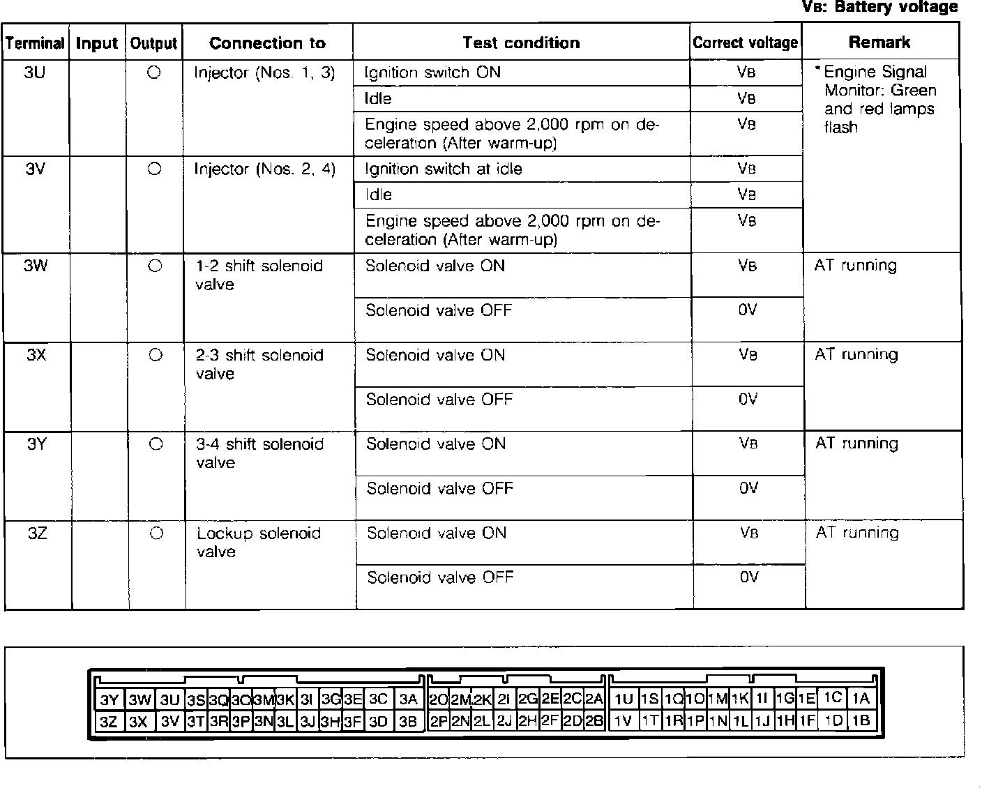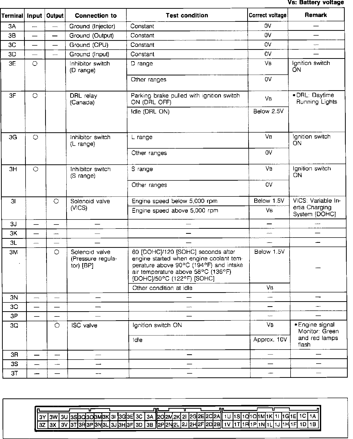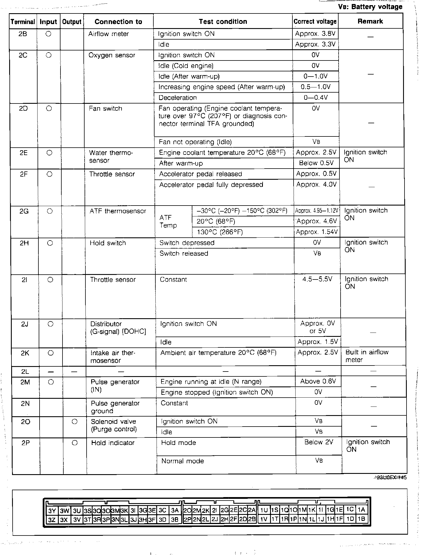 1. If factory test equipment is not available, use only digital volt/ohm meter with minimum 10Meg ohms internal impedance for testing ECU terminal voltages.