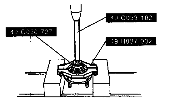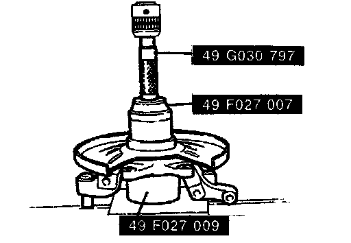 1. Remove the wheel hub from the knuckle with the SST and a press.